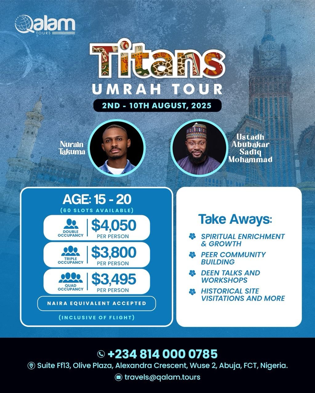 Join us on the Titans Umrah Tour, specifically crafted for young male adults aged 15 to 20. This unique journey offers a blend of spirituality and adventure, allowing youngsters to explore the rich cultural heritage of Islam while embarking on their sacred pilgrimage. Experience the beauty of Mecca and Medina, engage in meaningful discussions, and form lifelong friendships. Our knowledgeable guides will ensure a safe and enriching experience, combining educational activities with the spiritual significance of Umrah. Whether you are seeking personal growth or a deeper connection to your faith, the Titans Umrah Tour promises an unforgettable experience for young pilgrims.